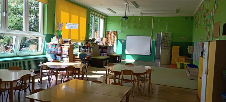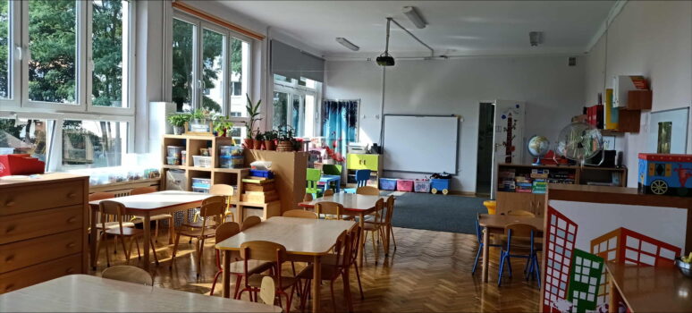 Budynek przedszkola jest zadbany i przyjazny dzieciom. Dzięki licznym remontom nasze sale i przestrzenie są dziś jasne, estetyczne i bezpieczne. Każda sala to miejsce zabawy, odkrywania i wspólnego przeżywania emocji. Znajdują się w nich kąciki tematyczne, sprzęt multimedialny i komputery – wszystko po to, by wspierać rozwój dziecka na wielu poziomach.